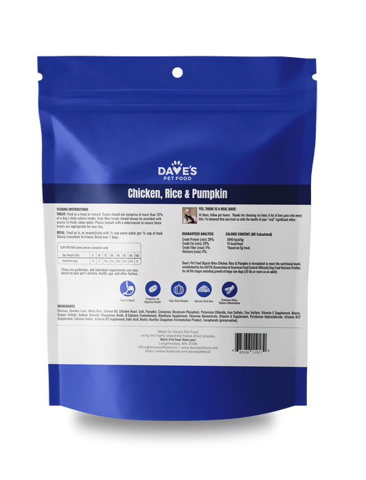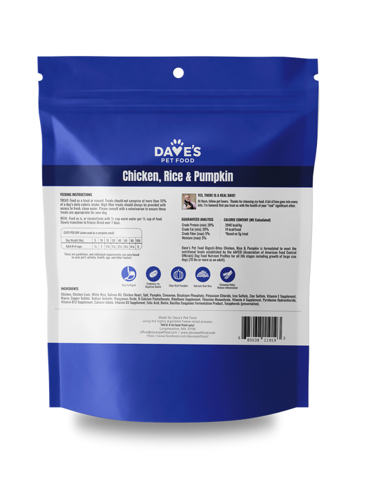 Dave's Digesti-Bites Chicken, Rice & Pumpkin Dog Treats /4 oz