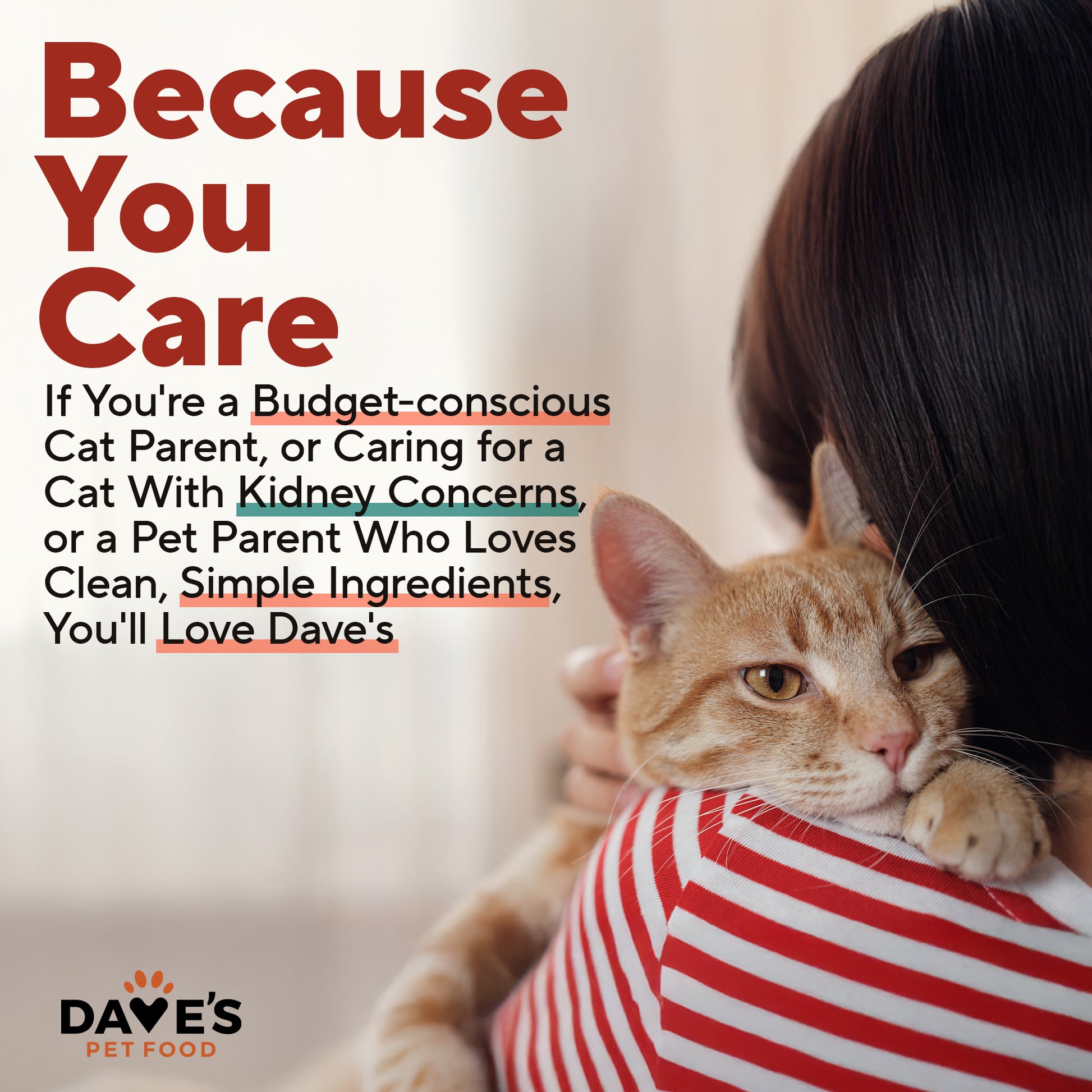 - ESSENTIAL VITAMINS & MINERALS, PLUS TAURINE. With protein-rich chicken pate in a nutrient-dense juicy pate, your cat will love the smooth texture and taste of Dave’s cat food.